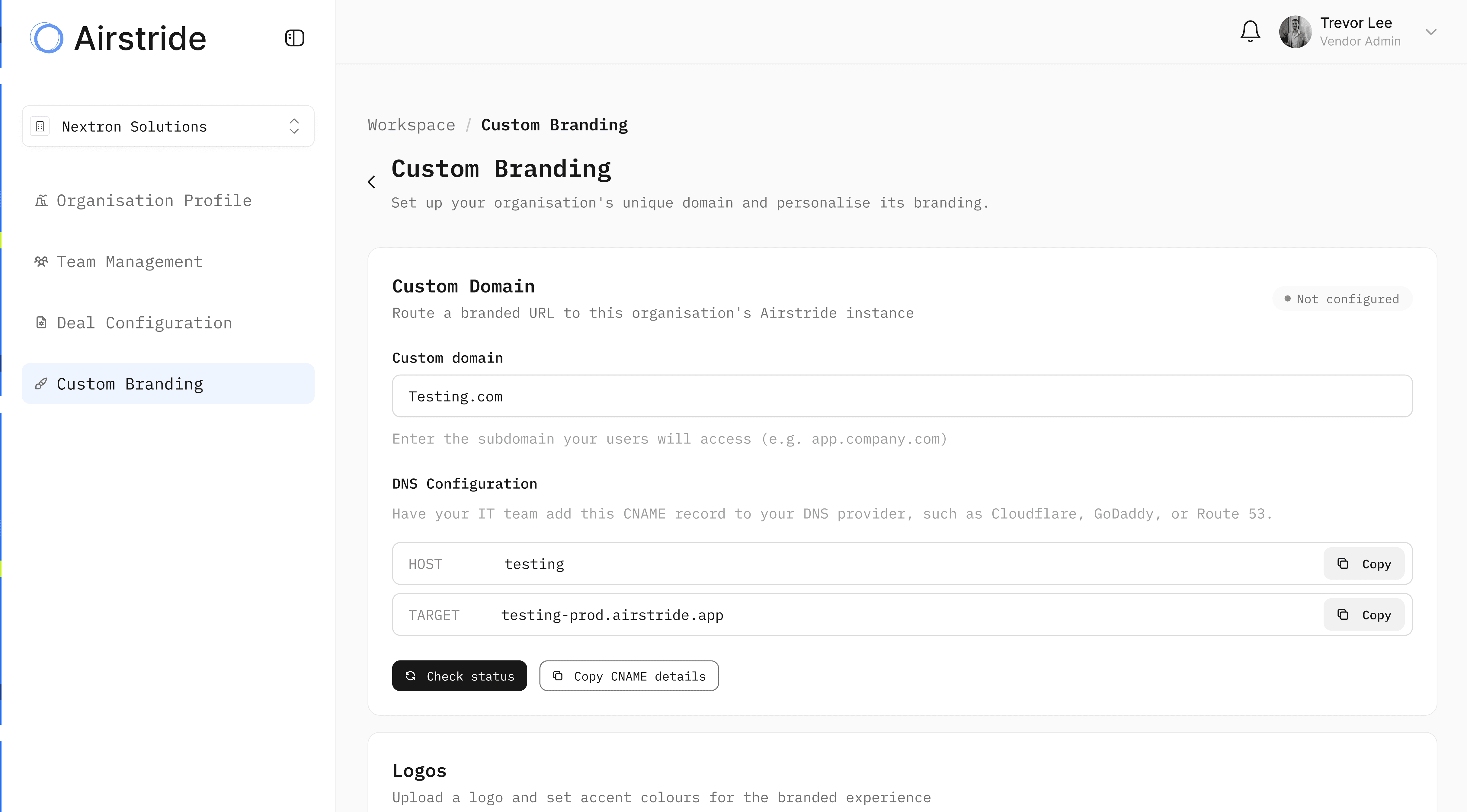 Custom logo and brand colours across the portal
